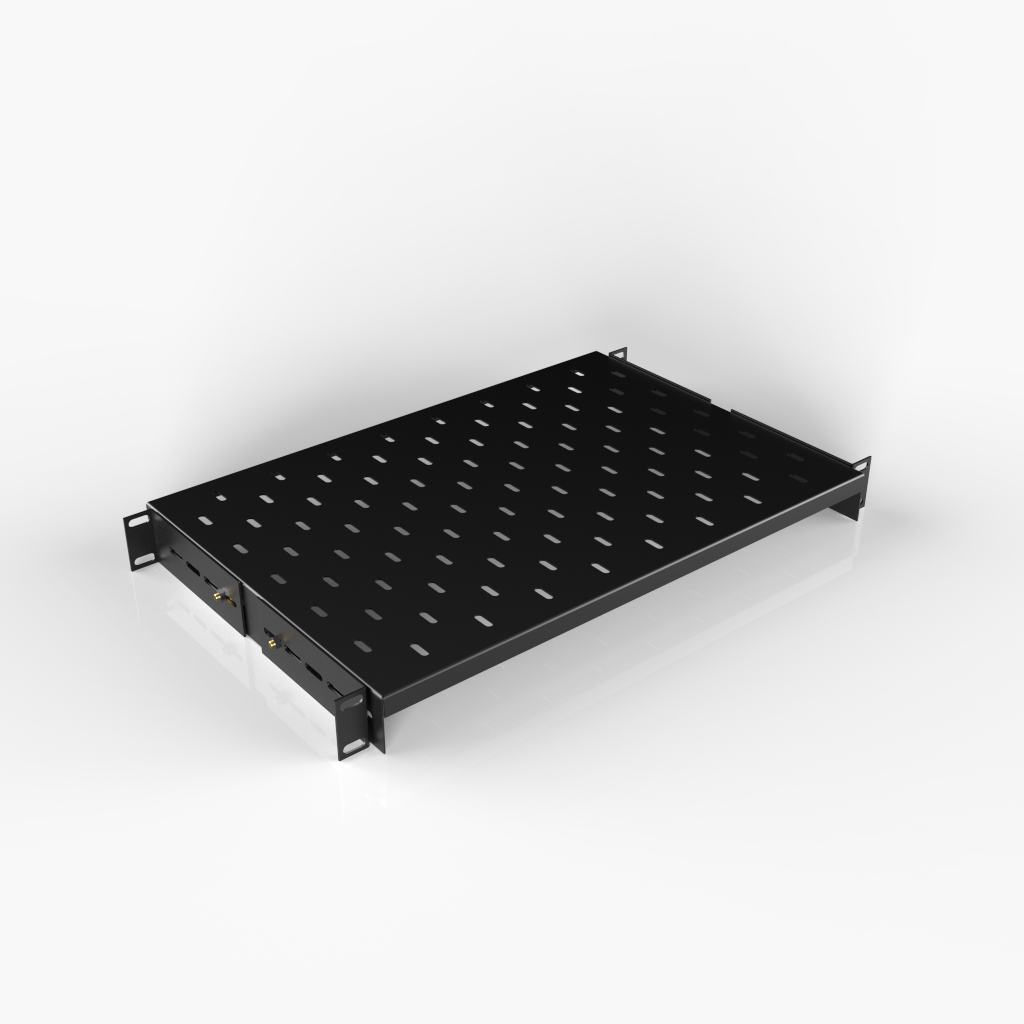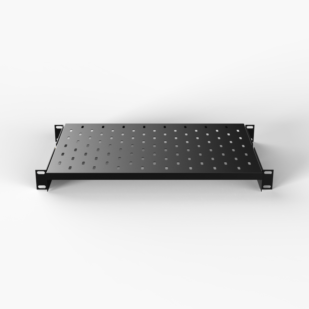 Bandeja de montagem central, para suporte de monitores, pontos de acesso sem fio, gabinetes e demais equipamentos de TI que normalmente não são possuem padronização de instalação 19″.