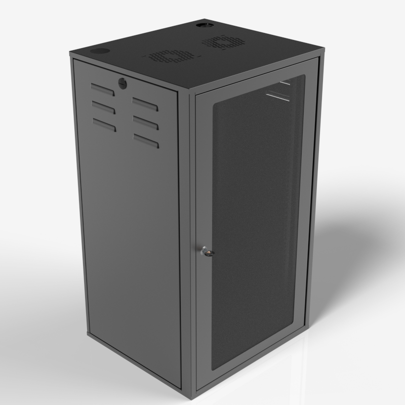 Com porta frontal com visor em policarbonato, este Rack economiza espaço no chão e ao mesmo tempo oferece uma maneira eficaz de gerenciar os equipamentos no interior do gabinete.